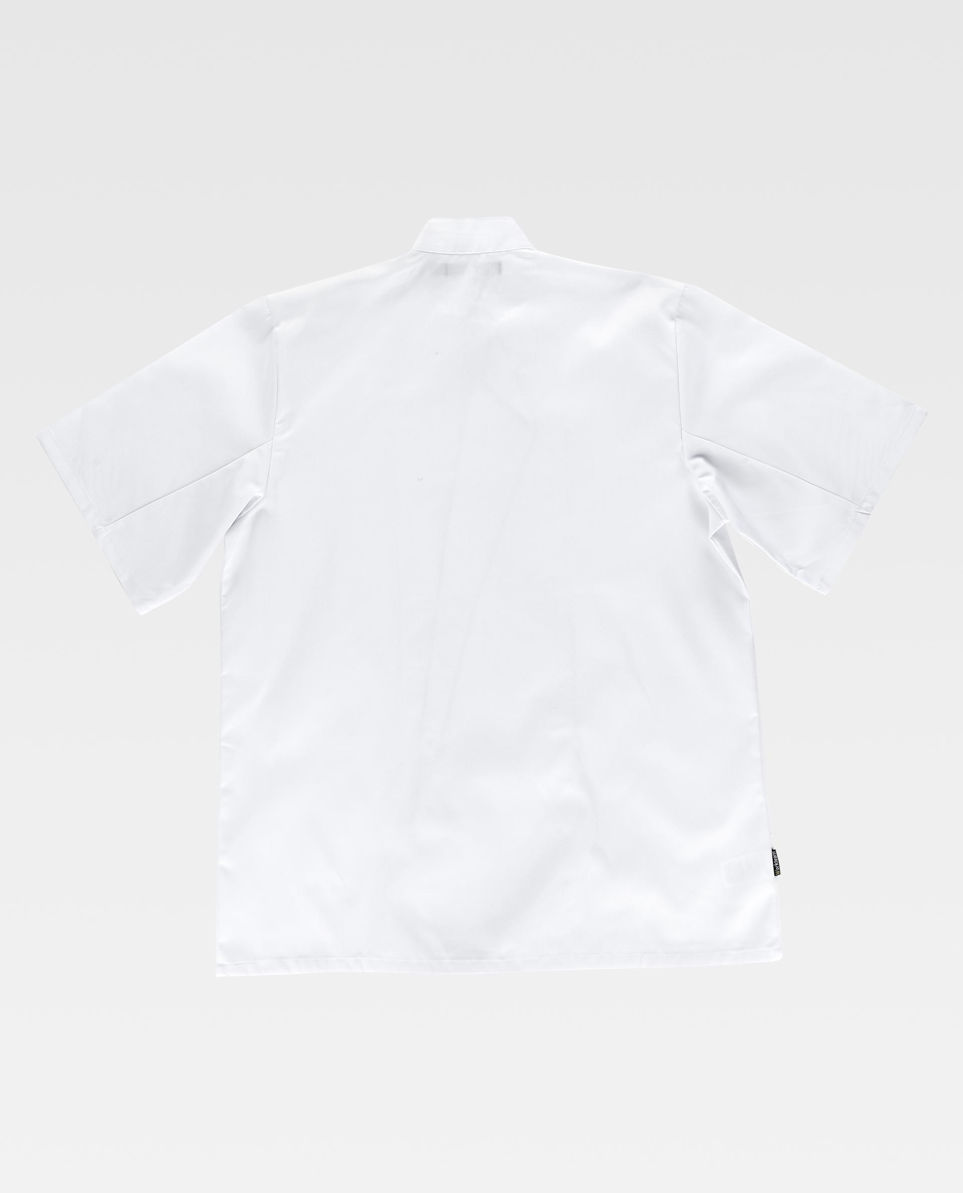 Chaquetilla básica unisex de cocina en color liso. Cuello Mao y cierre cruzado de doble botonadura al tono. Manga corta. Chaquetilla básica unisex de cocina en color liso. Cuello Mao y cierre cruzado de doble botonadura al tono. Manga corta.