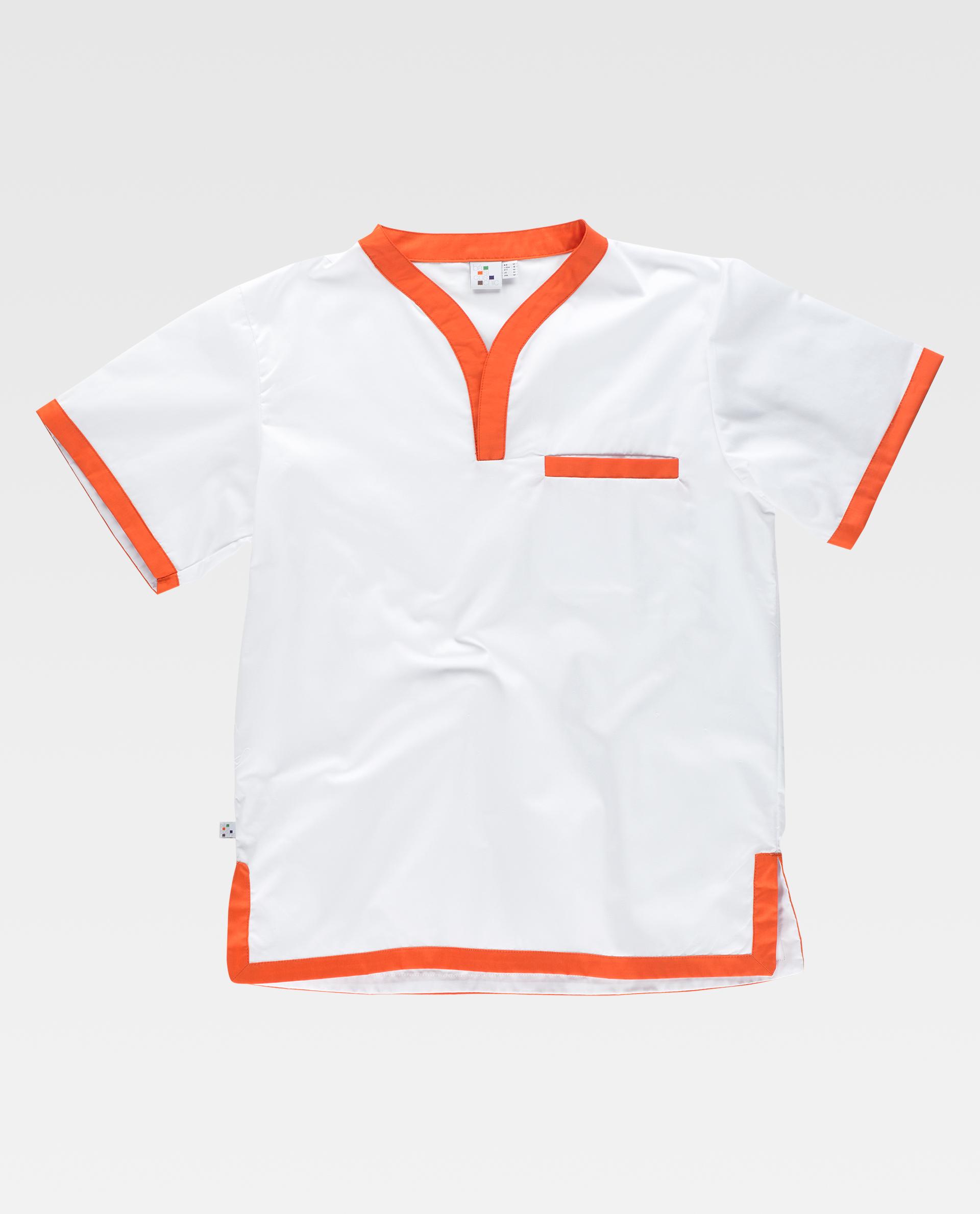 Casaca combinada de manga corta con cuello cruzado de tirilla. Un bolso de pecho de ojal. Cuello, bolso, mangas y bajo con vistas a contraste. Aberturas laterales. Casaca combinada de manga corta con cuello cruzado de tirilla. Un bolso de pecho de ojal. Cuello, bolso, mangas y bajo con vistas a contraste. Aberturas laterales.