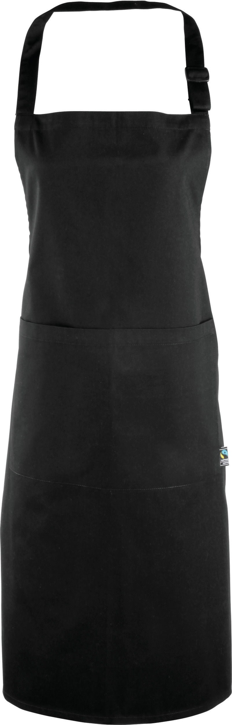100 % algodón de Comercio Justo. Cordón del mismo tejido que el delantal. Hebilla ajustable. Anchura: 60 cm. Largo total: 84 cm. Lavado doméstico a 40 °C. 100 % algodón con certificación de comercio justo. Bolsillo funcional en el pecho.