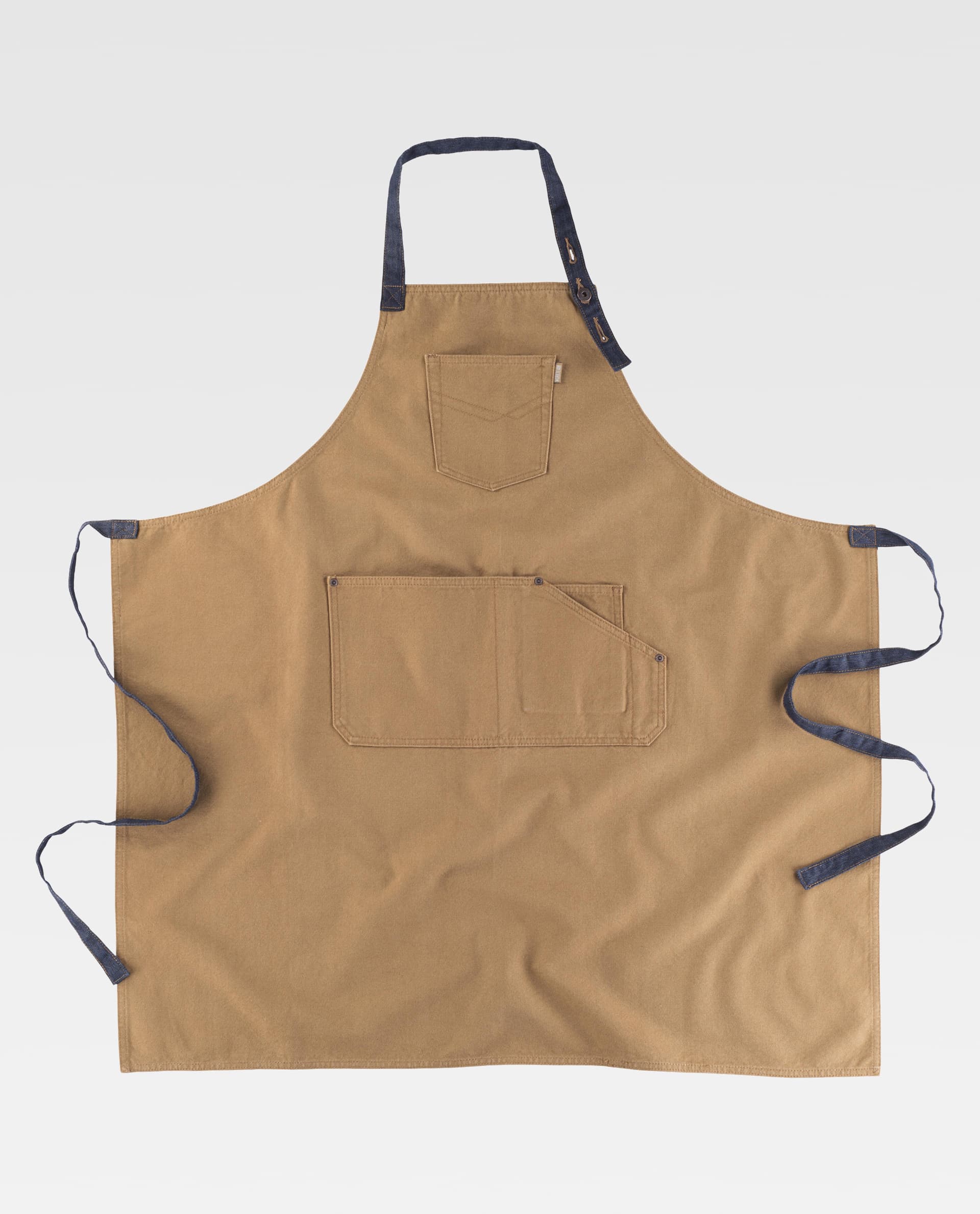 Delantal con peto en tejido canvas. Un bolso de pecho con costuras de fantasía y un bolso central de corte asimétrico compartimentado con bolsillo relojero interior. Cinta de tejido vaquero regulable con botones metálicos en el cuello y cintas para ajustar en la cintura. Diseño contemporáneo con remaches de cobre. Delantal con peto en tejido canvas. Un bolso de pecho con costuras de fantasía y un bolso central de corte asimétrico compartimentado con bolsillo relojero interior. Cinta de tejido vaquero regulable Confía en Garrampa, líder del merchandising desde hace 15 años y sorprende a tus clientes y empleados con cualquier regalo promocional incluido en nuestra amplia gama de productos.