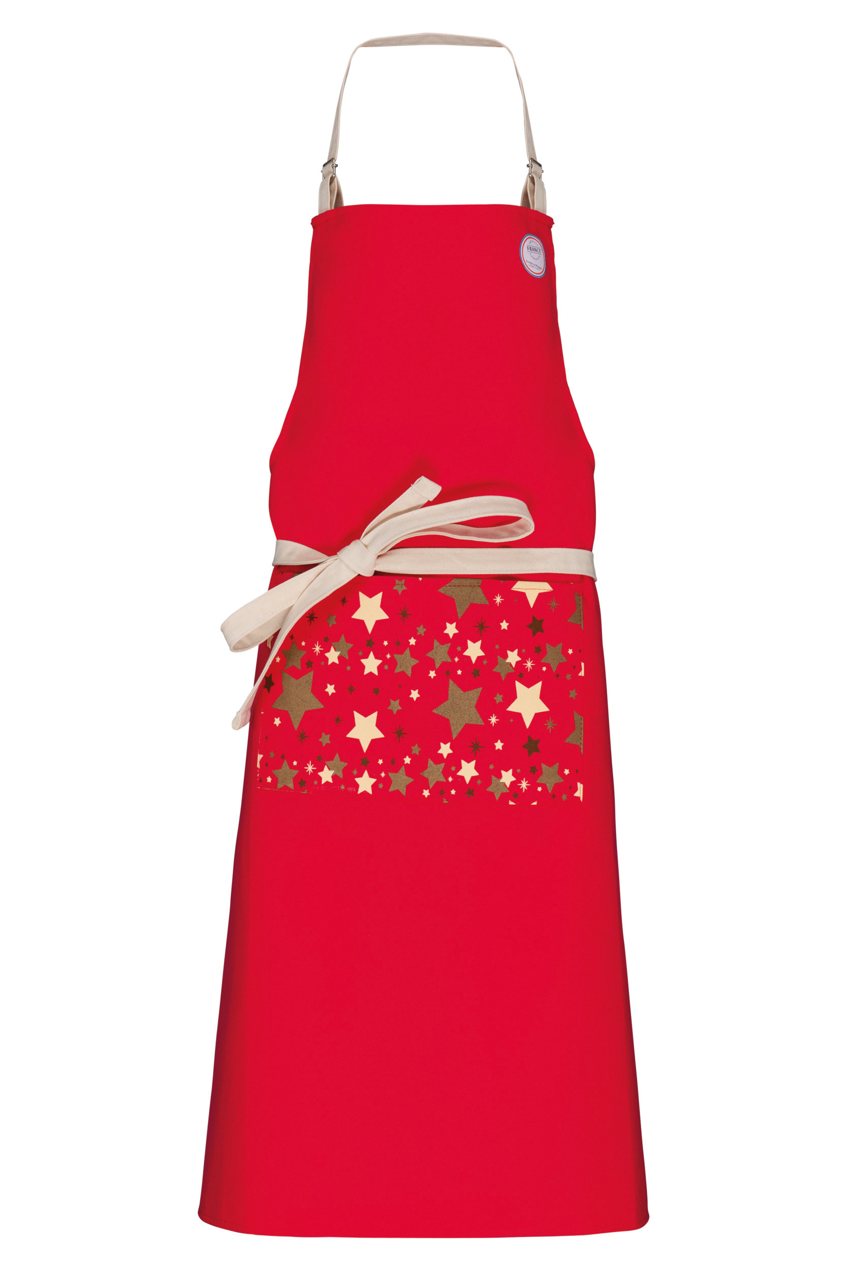 100% algodón. Lavado doméstico a 60ºC. Hebilla de metal a la altura del cuello para ajustar el largo del delantal. Bolsillo grande con motivo de estrellas serigrafiado en la parte delantera. Tira de ajuste en cuello y cintura contrastada en beige en el modelo Red, y a tono en el modelo Black. Etiqueta «Origine France Garantie. Produit en Bretagne» en la parte delantera. Etiqueta OFG (Origine France Garantie). Dimensiones (alto x ancho): 93 cm x 78 cm. Bolsillo (alto x ancho): 21 cm x 31 cm. Lavado a 60 °C para una higiene impecable. Etiqueta autoadhesiva extraíble «Origine France Garantie» en la parte delantera. La certificación OFG garantiza la trazabilidad y proporciona información de procedencia clara y objetiva.