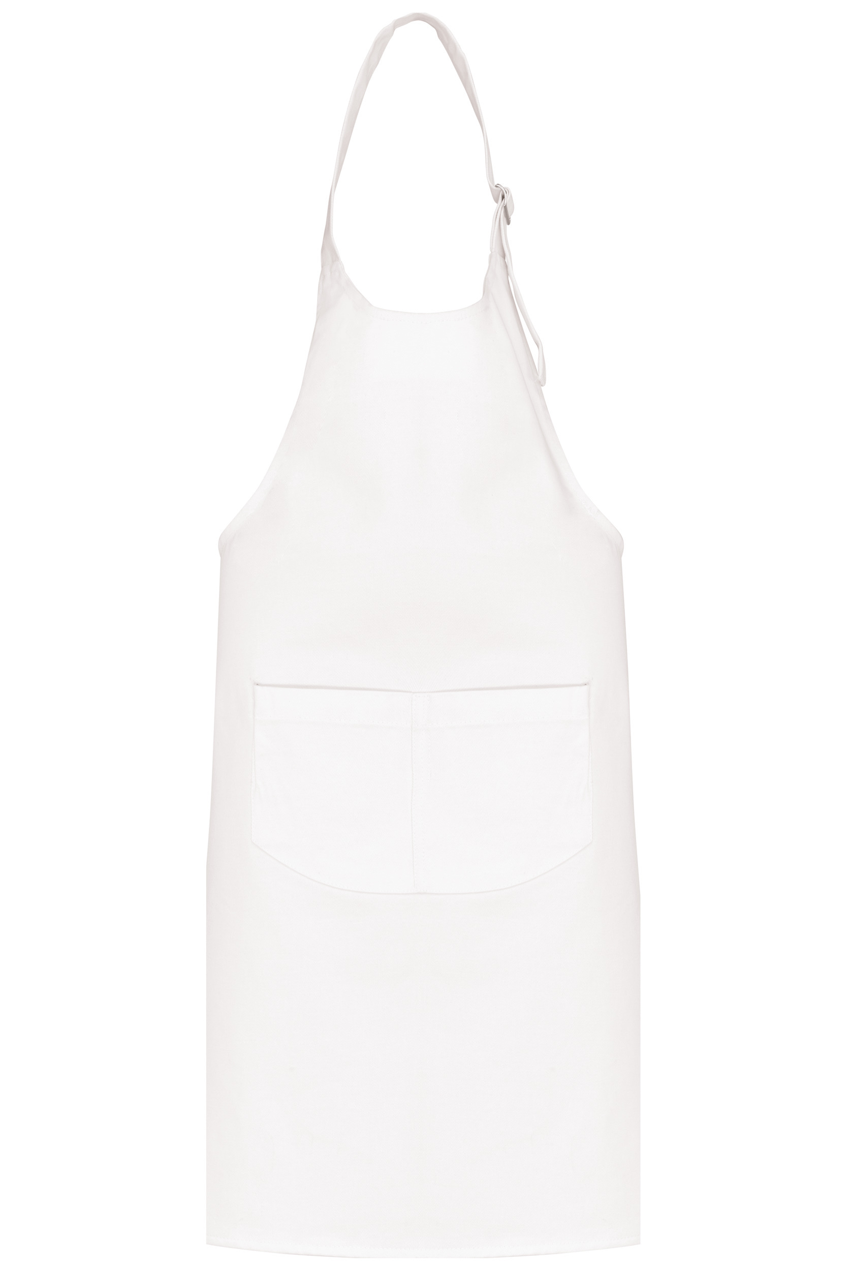 100% algodón. Tira ajustable en cuello con hebilla metálica. Bolsillo grande con 2 compartimientos. Certificado STANDARD 100 by OEKO-TEX®N° CQ1007/8, IFTH. Lavable a 60°. Práctico, funcional y ajustable. Fácil de personalizar.